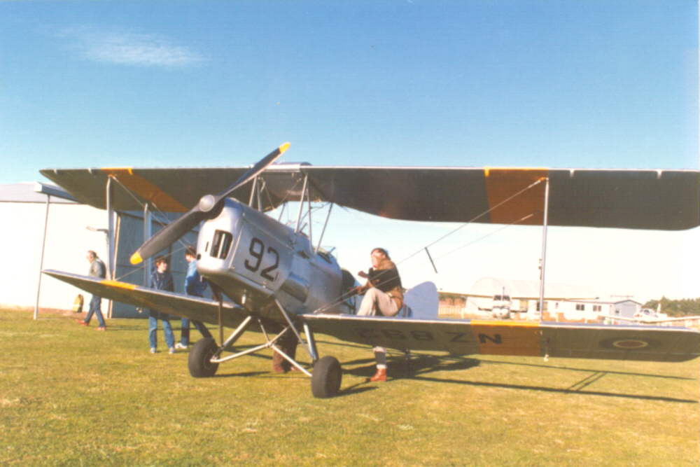 Alan Land's DH "Tiger-moth" ZK-ANQ, with Owen Martin climbing in.